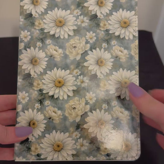 Let your thoughts bloom in style with our Daisy Blossom Journal — a charming blend of nature and craftsmanship. Featuring a soft, dreamy pattern of white daisies against a calming gray backdrop, this journal is perfect for those who find beauty in the little things.